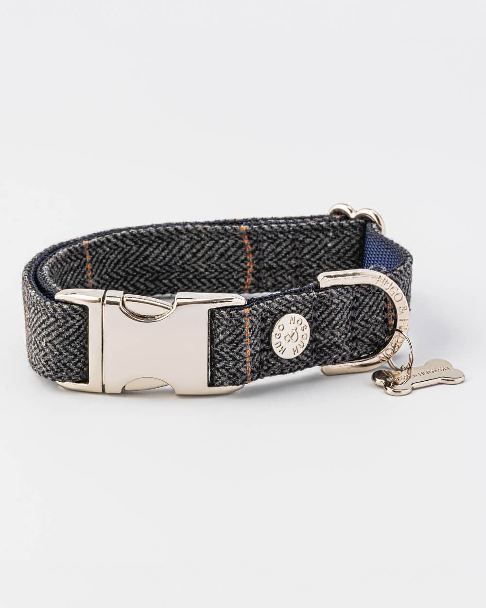 Treat your pup with the best of British style with our Grey Checked Herringbone Tweed Metal Buckle Dog Collar. Crafted with luxury in mind, its quintessential herringbone and checked tweed fabric is complemented by a strong metal buckle, ensuring a snug and secure fit. With 4 sizes to pick from, you’re sure to find the perfect fit for any breed or size! Matching dog lead and harness available.