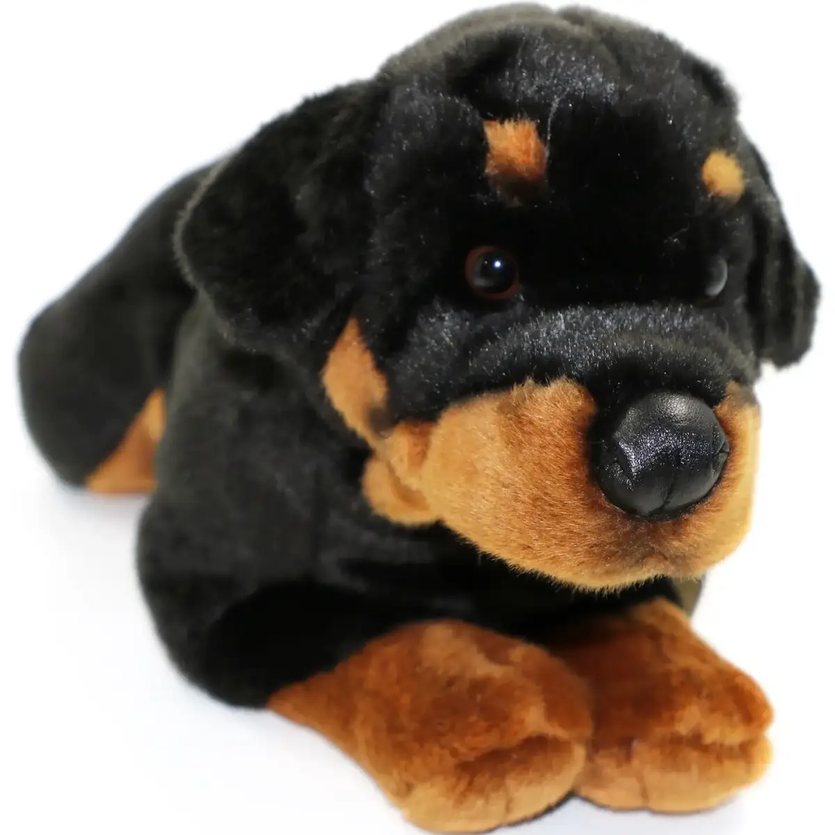 Uni Toys 22811A-RW Rottweiler Plush Soft Toy – 45cm Black and Brown Lying Dog