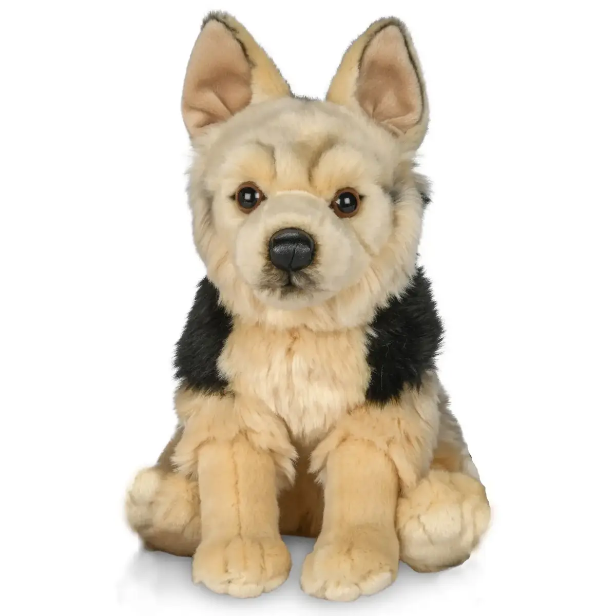 Uni Toys 32314A-DS German Shepherd Plush Soft Toy – 27cm Black and Beige Sitting
