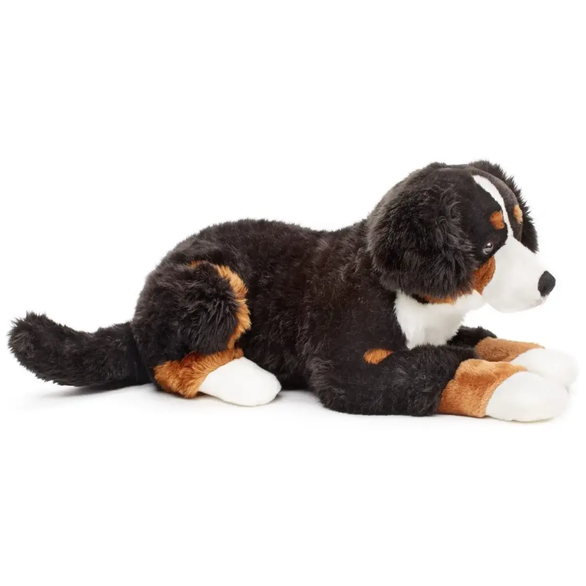 Bring a big, comforting companion to play with the Uni Toys B21168 Bernese Mountain Dog Plush Soft Toy, a generously sized dog designed in a relaxed lying pose. Measuring approximately 70cm in length, this plush features the classic black, brown, and white colouring of a Bernese Mountain Dog, with detailed markings that give it a familiar and friendly appearance. Its large size and calm expression make it especially inviting and full of character.