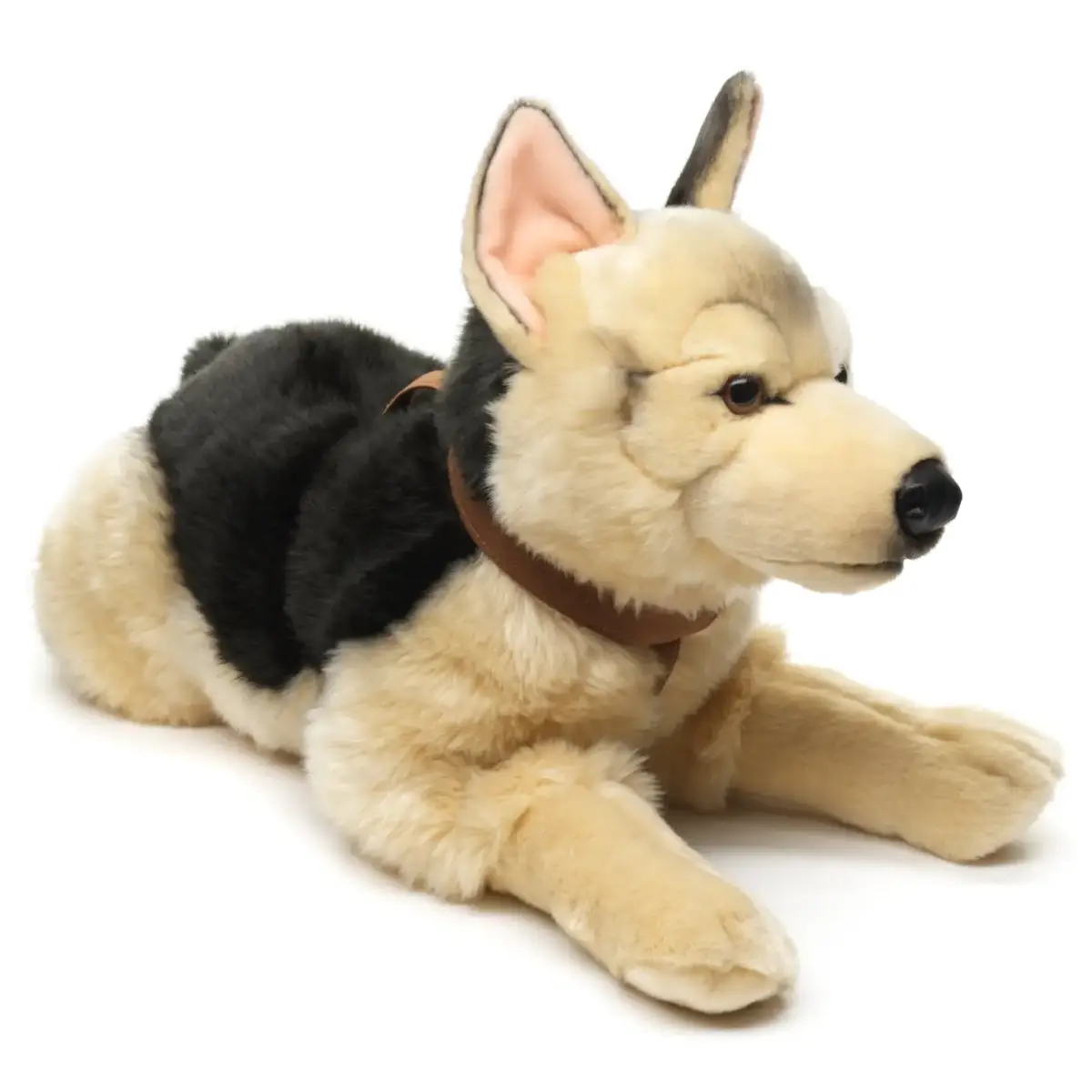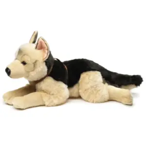 Design: Black and tan German Shepherd plush in lying pose