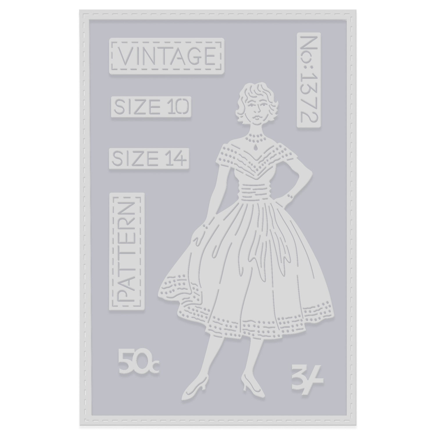 Vintage Dressmaking Pattern Sweet Dixie Cutting Die from World of Craft. Retro dressmaking, sewing pattern or guide including sentiments: This dies cuts, embosses and scores. Fits almost all of the leading die cutting machines. Vintage, Size 10, Size 14, No: 1372, Pattern, 50c, 3 shillings.