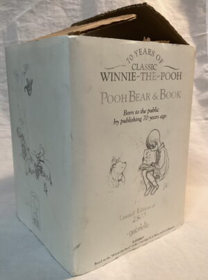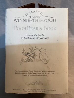 This Winnie the Pooh was created for the 70th Anniversary of the much loved bear by Gabrielle Designs as a Limited Edition. He comes complete with his wooden stand and miniature bear sized book of the Winnie the Pooh illustrated tales, also his certificates of authenticity . He is five way jointed and made with short pile golden mohair with beige felted footpads.