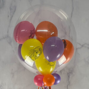 If your little one is mad about the Disney princesses then this is the perfect way to reveal a special trip to Disneyland that they’ll never forget. We inflate a 20″ clear balloon, while inside we add blue, green, white and pink balloons, printed with the faces of various Disney princesses. On the outside you can add any personalised message, or a simple ‘We’re Going To Disneyland!’ To complete the look we add matching balloons, ribbons and a weight. This balloon makes the perfect gift for any occasion, whether it’s Christmas or a special birthday. Lasting 7 – 10 days on average, it will be remembered forever.