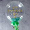 The ‘Will You Marry Me?’ Personalised Feather-Filled Bubble Balloon from Party On is a dazzling decoration that will float out of the box to surprise the one you love. The perfect way to create a unique marriage proposal to remember, this balloon is designed with elegant yet luxurious style and can be personalised with special wording of your choice. We inflate a 20″ spherical clear plastic balloon and then insert soft feathers. To finish we add 4 small balloons to the base of the balloon and add colour co-ordinated ribbons and weight. Each balloon lasts between 7 – 10 days, long lasting in comparison to standard foil balloons.