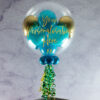 Let your friend, family member or special someone know how much you wish you could be there with our bespoke Multi Fill Bubble Balloon. Choose your own heartfelt words for the front of the ballon and personalise it further with their favourite colours. We inflate a 20″ spherical clear plastic balloon and then insert balloons in your choice of colours inside. To finish we add 4 small balloons to the base of the balloon and add colour co-ordinated ribbons and weight. Typically lasting between 7 – 10 days, they’re a great, long-lasting gift. Once deflated they can be folded up to use in a memory box.